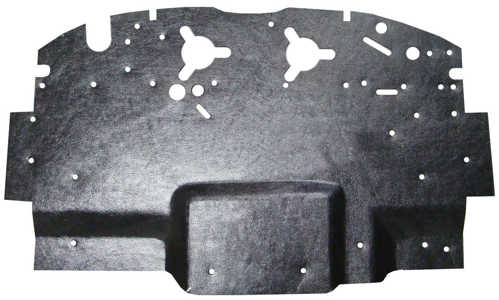 Our firewall insulator is made from BLACK LEATHER GRAIN ABS PLASTIC, which is durable and designed to withstand high temperatures. It is also backed with time-correct insulation for optimal performance in classic restorations.