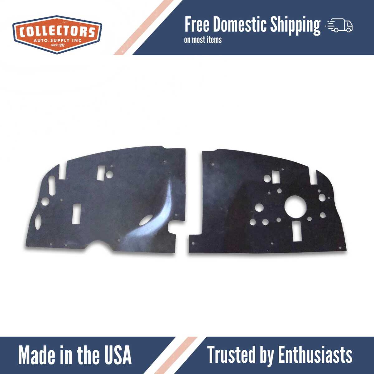 This insulation mounts to the firewall to block engine heat, noise, and vibration from entering the cabin.