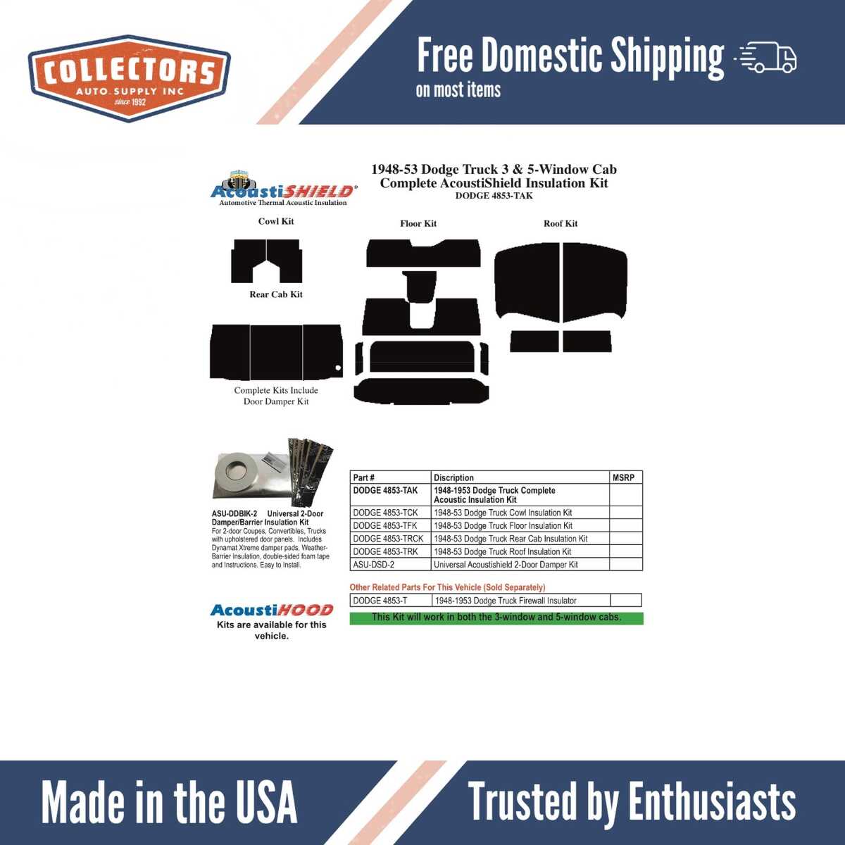 - Vehicle Fitment: 1948-1953 Dodge Truck