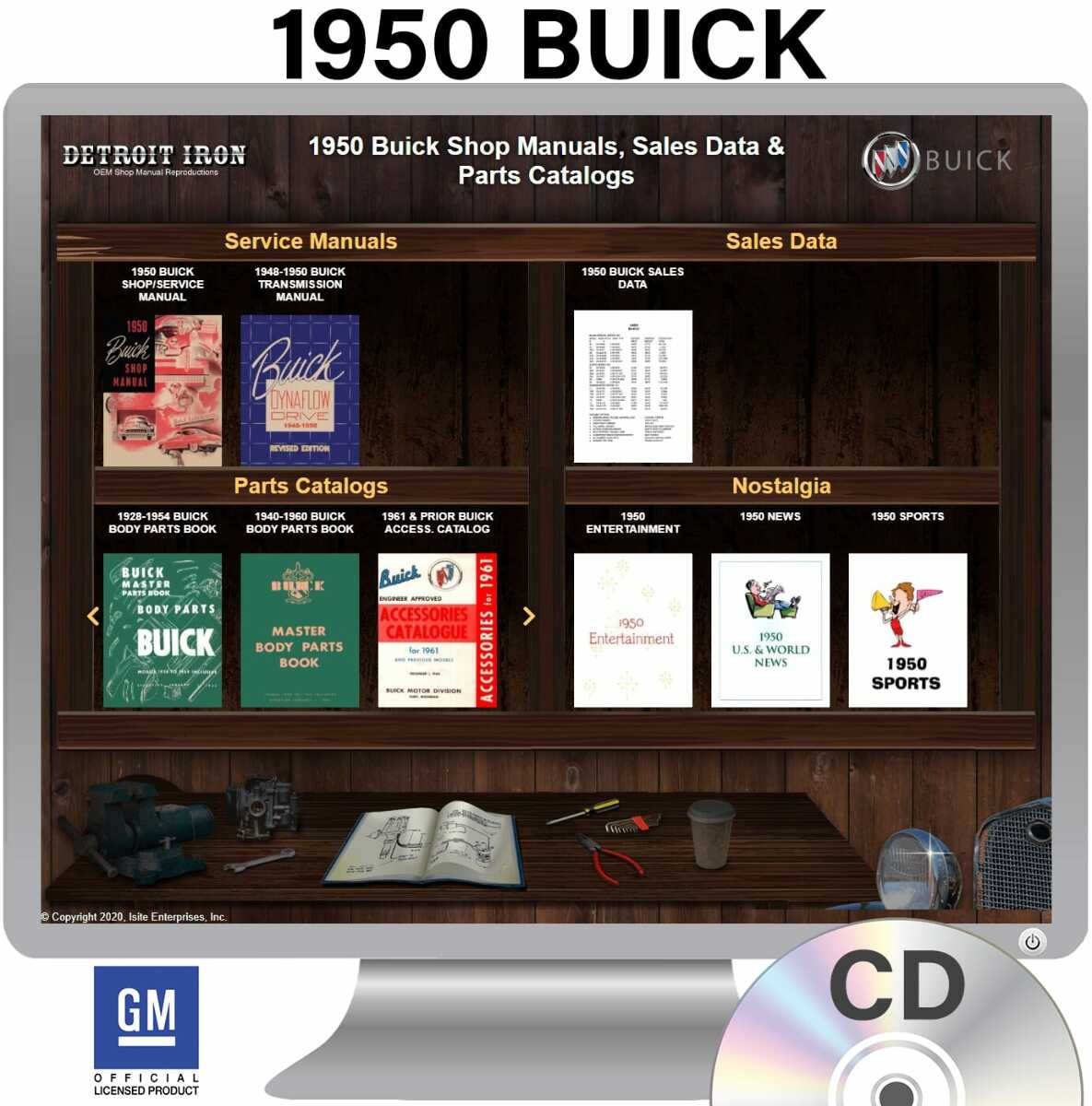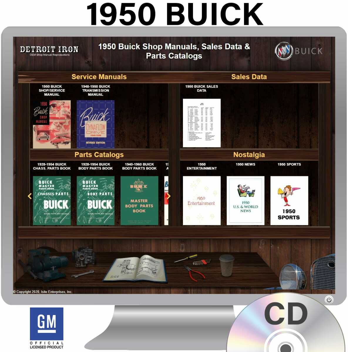 The 1950 Buick Shop Manuals, Parts Books & Sales Data on CD is a digital product licensed by GM. This digital product provides a full set of original equipment manufacturer (OEM) repair and rebuild literature in digital PDF format. This set of manuals and literature were originally authored and published by the car / truck manufacturer to be used by their dealership mechanics so they are very comprehensive. It features an easy-to-use bookcase in a garage scene containing a set of PDF manuals, catalogs, brochures and nostalgia for a specific year, make and model range. Features: - Each manual is chapter bookmarked into a single PDF file, allowing for ease of searching - Files are printable and searchable - The bookcase provides organization of manual types (Service Manuals, Sales Literature, Parts Catalogs & Nostalgia). Refer below for specific details included in the 1950 Buick Shop Manuals, Parts Books & Sales Data Detroit Iron CD product. MANUALS INCLUDED: - 1950 Buick Shop Manual - 1948-1950 Dynaflow Transmission Shop Manual - 1928-1954 Buick Master Body Parts Book - 1928-1954 Buick Master Chassis Parts Book - 1940-1960 Buick Master Body Parts Book - 1961 Prior Buick Accessories Catalog - 1950 Buick Sales Data 1950 Buick Models Covered: Roadmaster, Special, Super This digital product includes OEM / factory service / shop manuals and parts guides / books. Each factory service/shop manual provides detailed step-by-step service instructions with associated exploded views and photos for all vehicle components. An OEM Parts Guide or Parts Book provides detailed parts information via exploding diagram cutouts of sections of your vehicle assembly with part numbers and textual descriptions. A parts guide provides part interchange information so you can find replacement parts. SYSTEM REQUIREMENTS: Any Operating System (OS) that allows user access to the file system, e.g. Windows, Mac OS, Linux, Chromebook, etc. An HTML Browser such as: Edge, Explorer, Chrome, Safari, Firefox and others. NOTE: No internet connection is required to use this product.