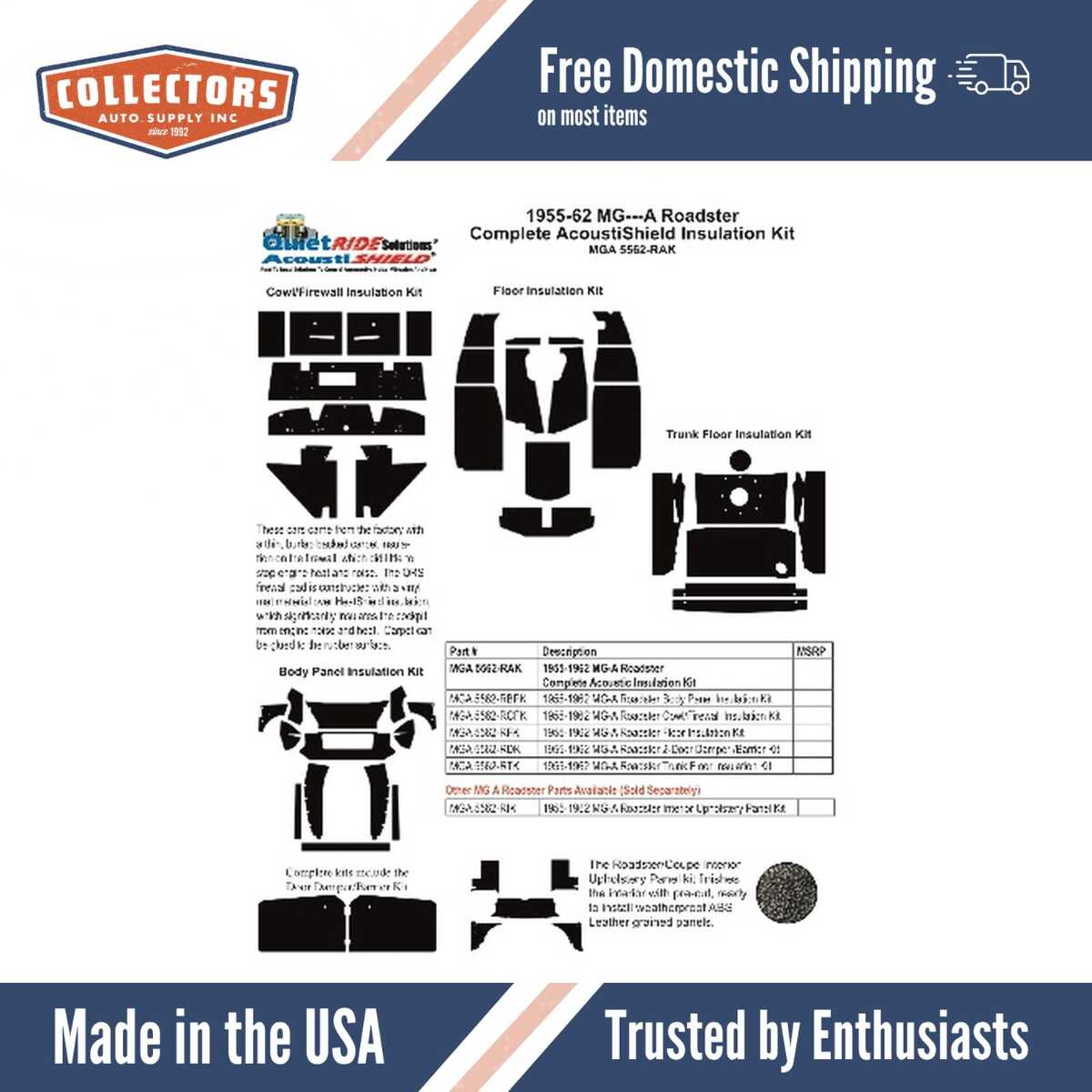 Experience unmatched quality with the Thermal Acoustic Insulation Upgrade for 1955-1962, the ideal choice for premium heat insulation and noise reduction.