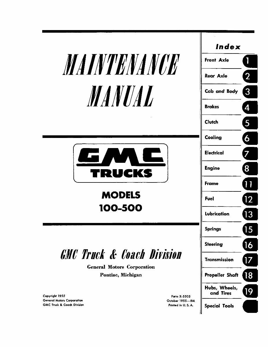 This Repair Manual is specifically designed to fit 1955 GMC 100 vehicles with a Truck body style.