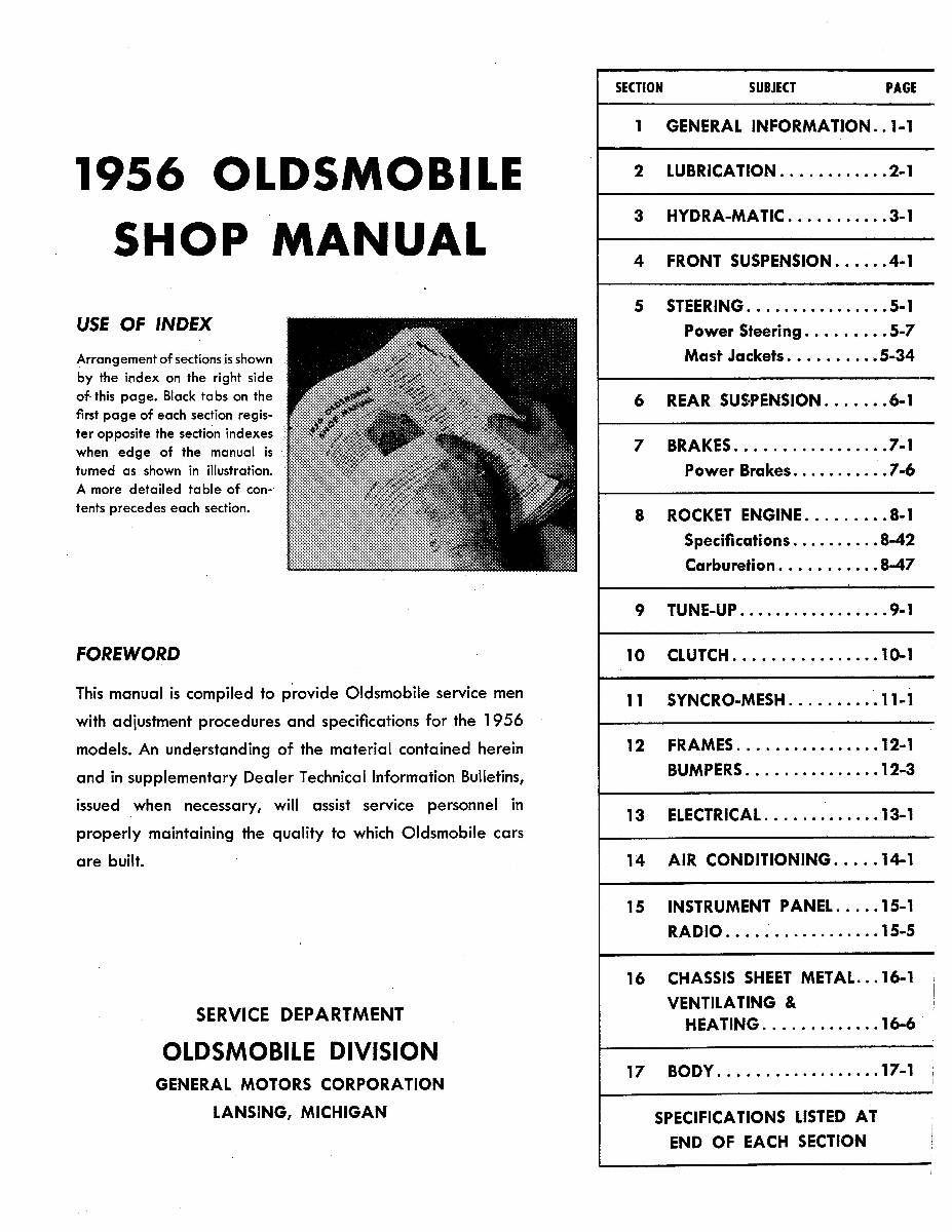 This Repair Manual is specifically designed to fit 1956 Oldsmobile 88 vehicles with a Car body style.
