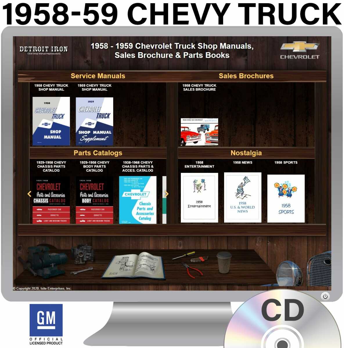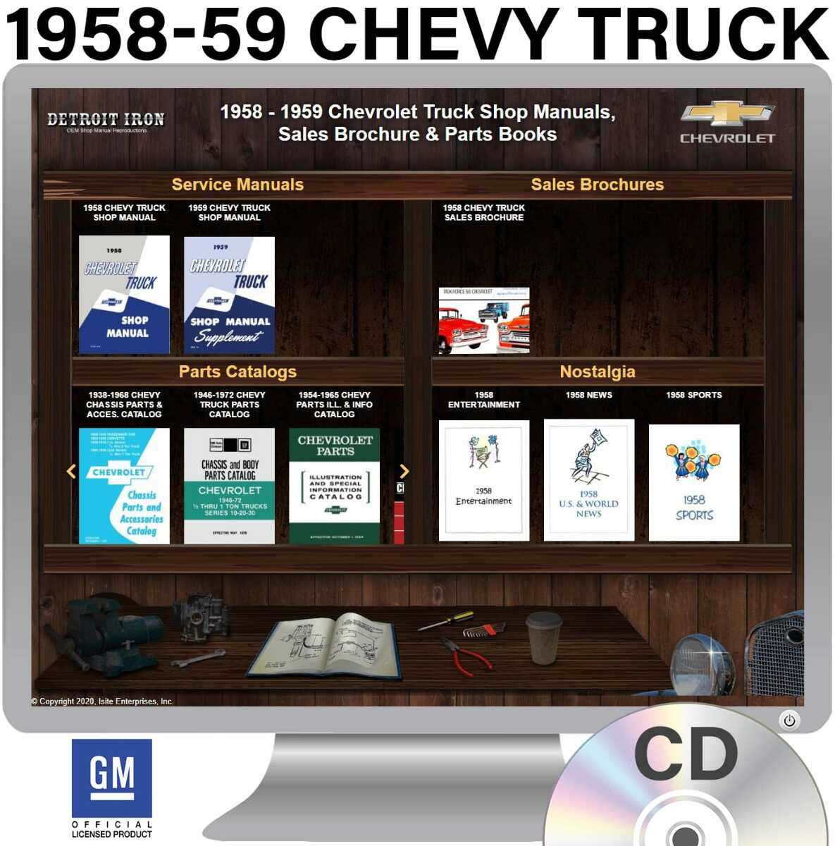 This Digital Repair / Part Manual Kit is specifically designed to fit 1958-1959 Chevrolet Truck vehicles with a Truck body style.