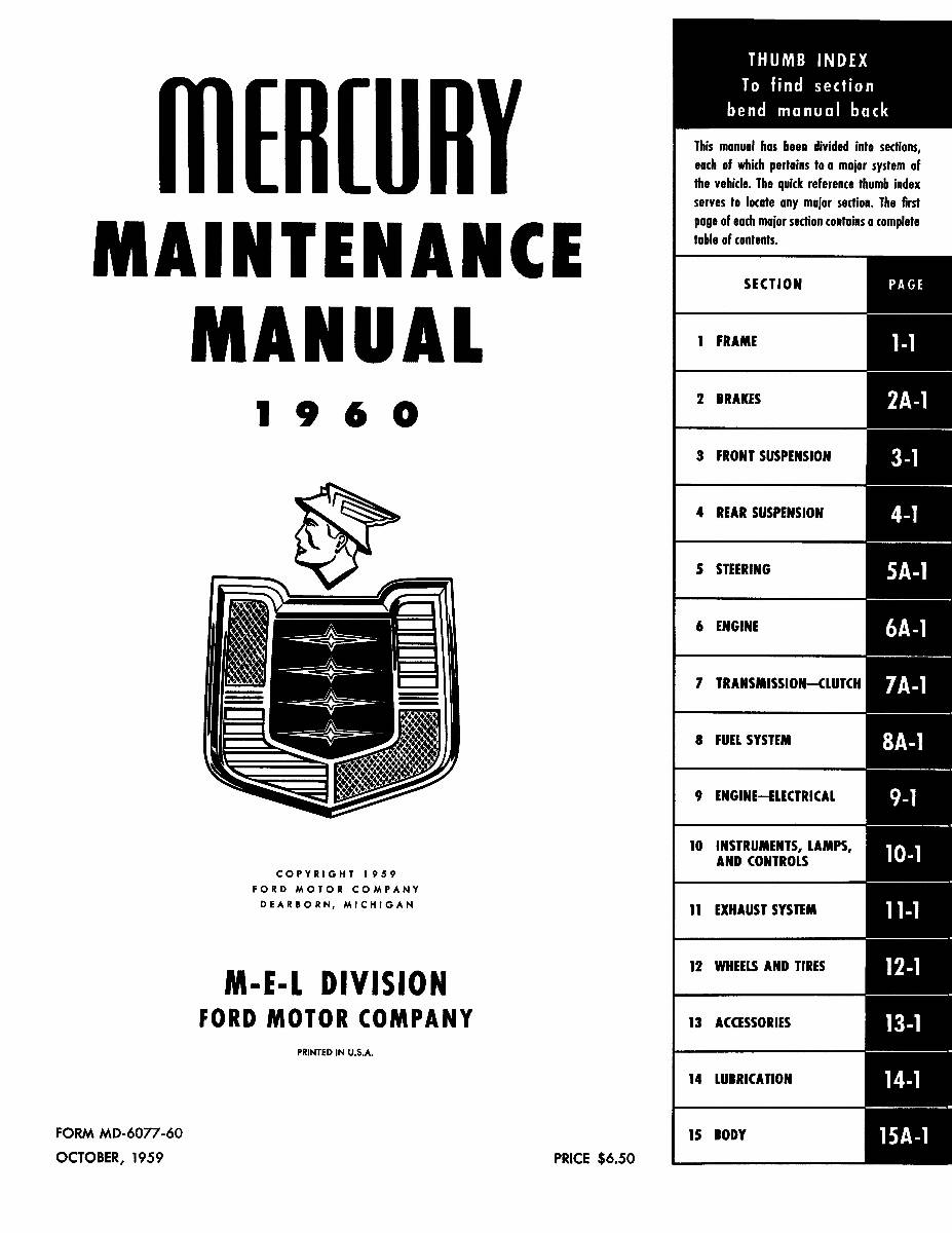This Repair Manual is specifically designed to fit 1960 Mercury Colony Park vehicles with a Car body style.