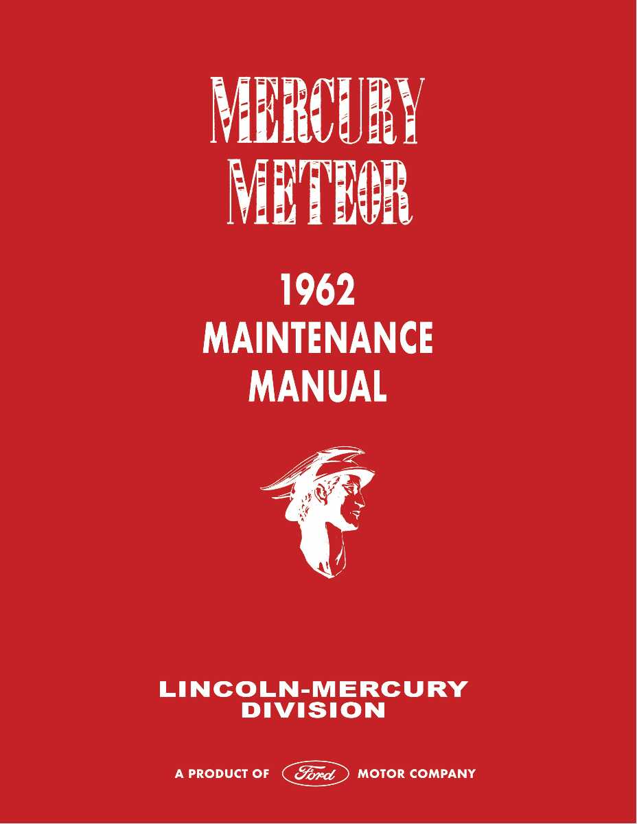 This Repair Manual is printed here in the United States, designed to duplicate the original print with better image and text quality than that of the originals for the 1962 Mercury Meteor vehicles.