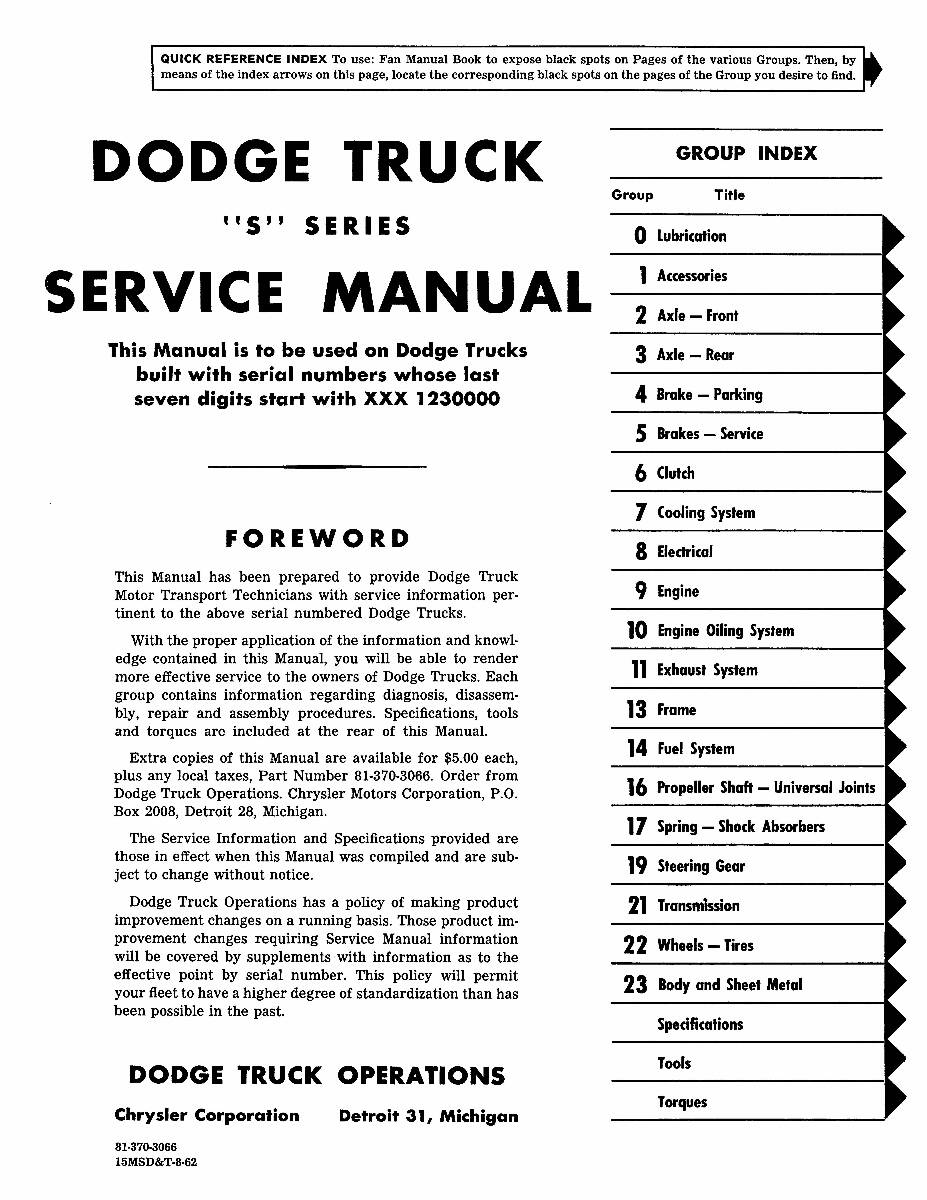 This 1963 Dodge Truck S Series Shop Manual is a high-quality, licensed PRINT reproduction of the service manual authored by Dodge Division. This OEM factory manual is 8.5 x 11 inches, paperback bound, shrink-wrapped and contains 880 pages of comprehensive mechanical instructions with detailed diagrams, photos and specifications for the mechanical components of your vehicle such as the engine, transmission, suspension, brakes, fuel, exhaust, steering, electrical and drive line. Service / repair manuals were originally written by the automotive manufacturer to be used by their dealership mechanics. The following 1963 Dodge models are covered: D100 Series, D200 Series, D300 Series, P100, P100 Van, P200, P200 Van, P300, P300 Van, W100 Series, W200 Series, W300 Series, Wm300 Power Wagon. This factory written shop manual is perfect for the restorer or anyone working on one of these vehicles.