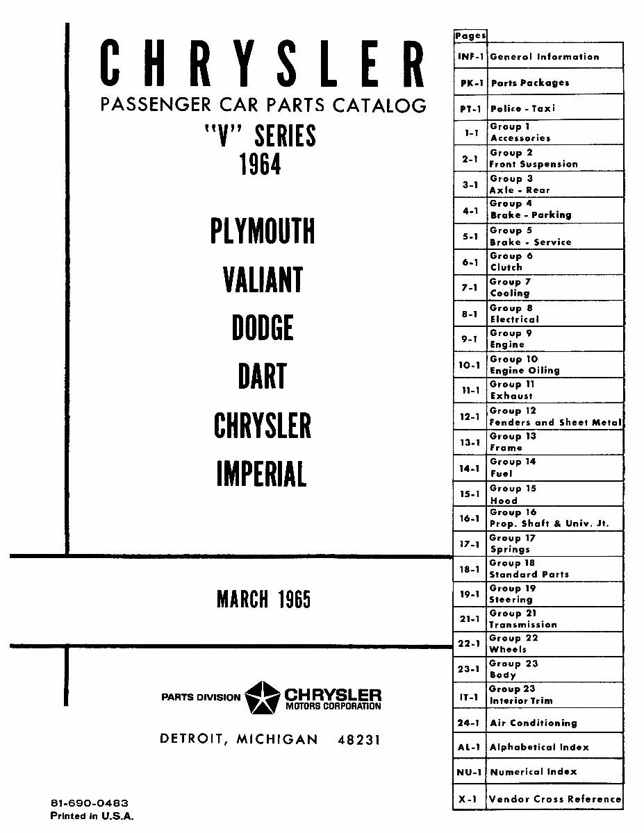1964 Chrysler, Dodge, Plymouth Multiple Models Part Guide
