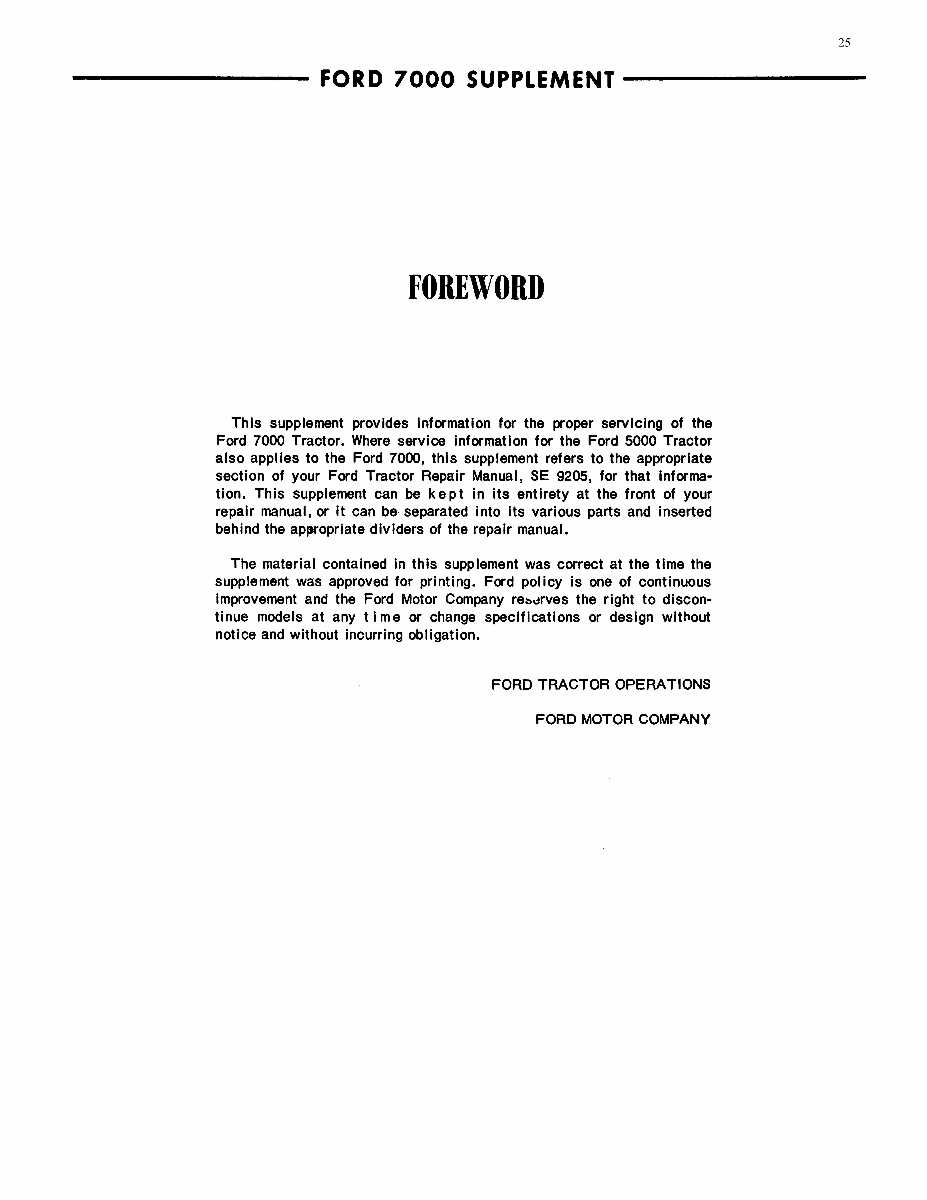 This Repair Manual is printed here in the United States, designed to duplicate the original print with better image and text quality than that of the originals for the 1965-1972 Ford Tractor vehicles.