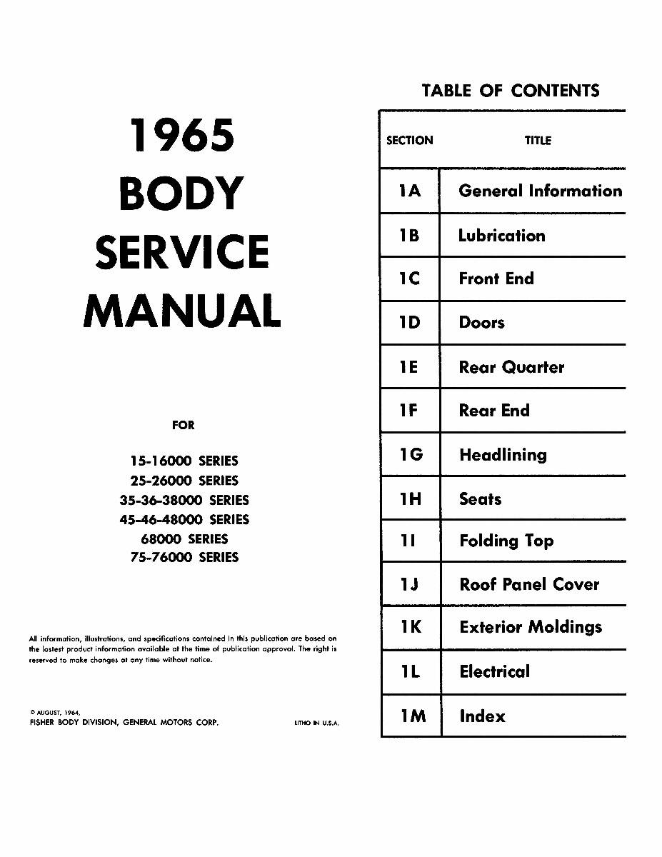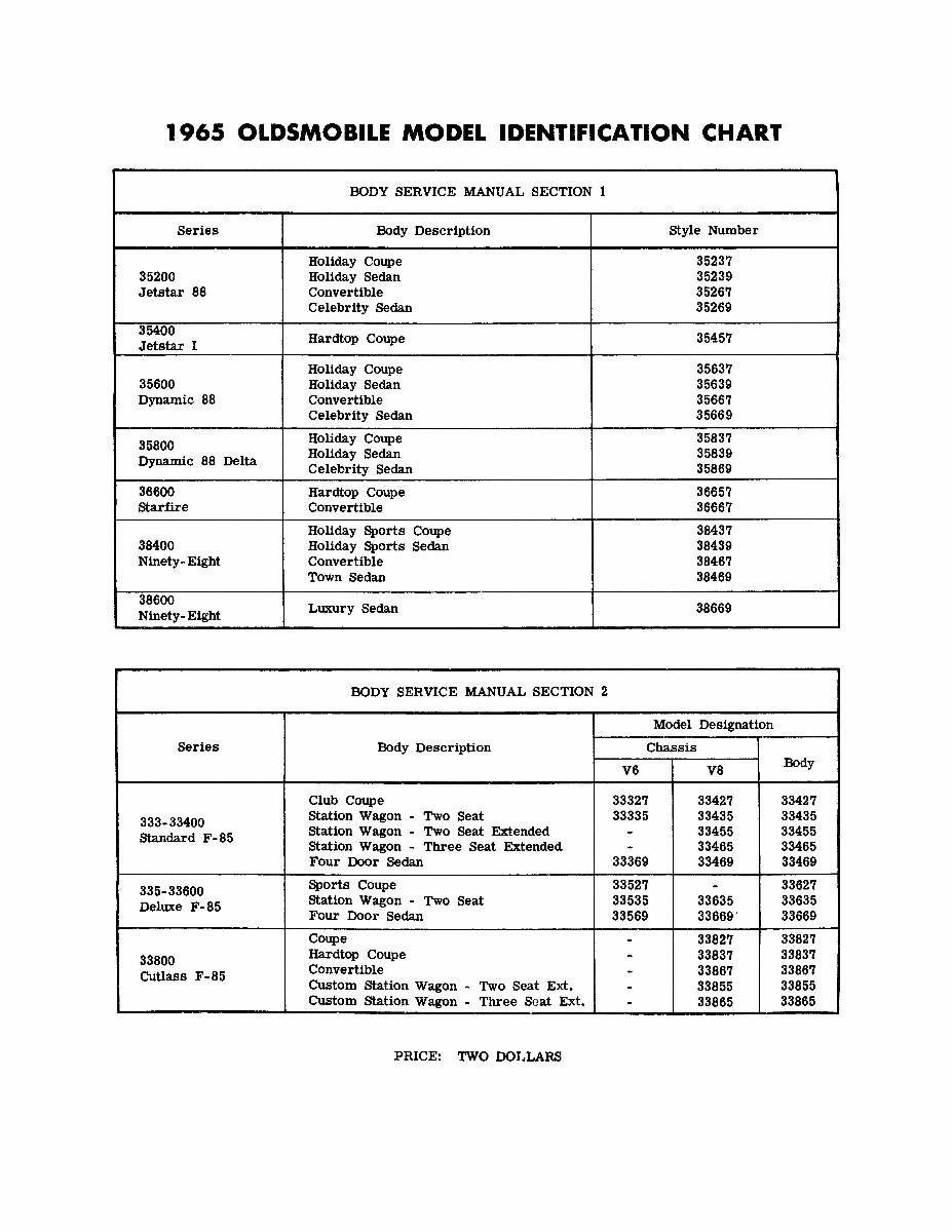 This Body Repair Manual is specifically designed to fit 1965 Oldsmobile 442 vehicles with a Car body style.