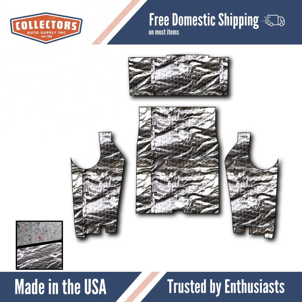 This kit insulates the vehicle floor to reduce heat, noise, and vibration entering from the drivetrain and road.
