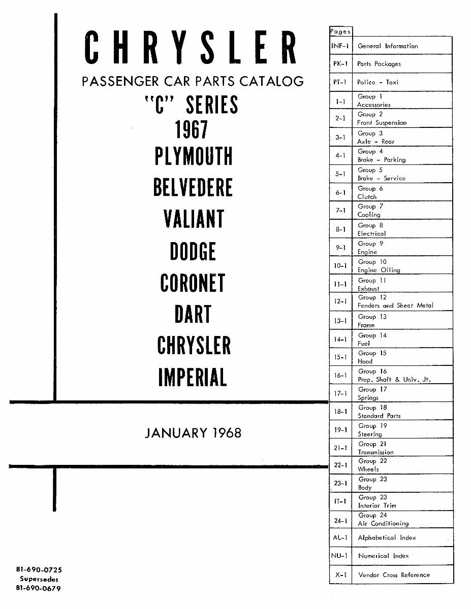 1967 Chrysler, Dodge, Plymouth Multiple Models Part Guide