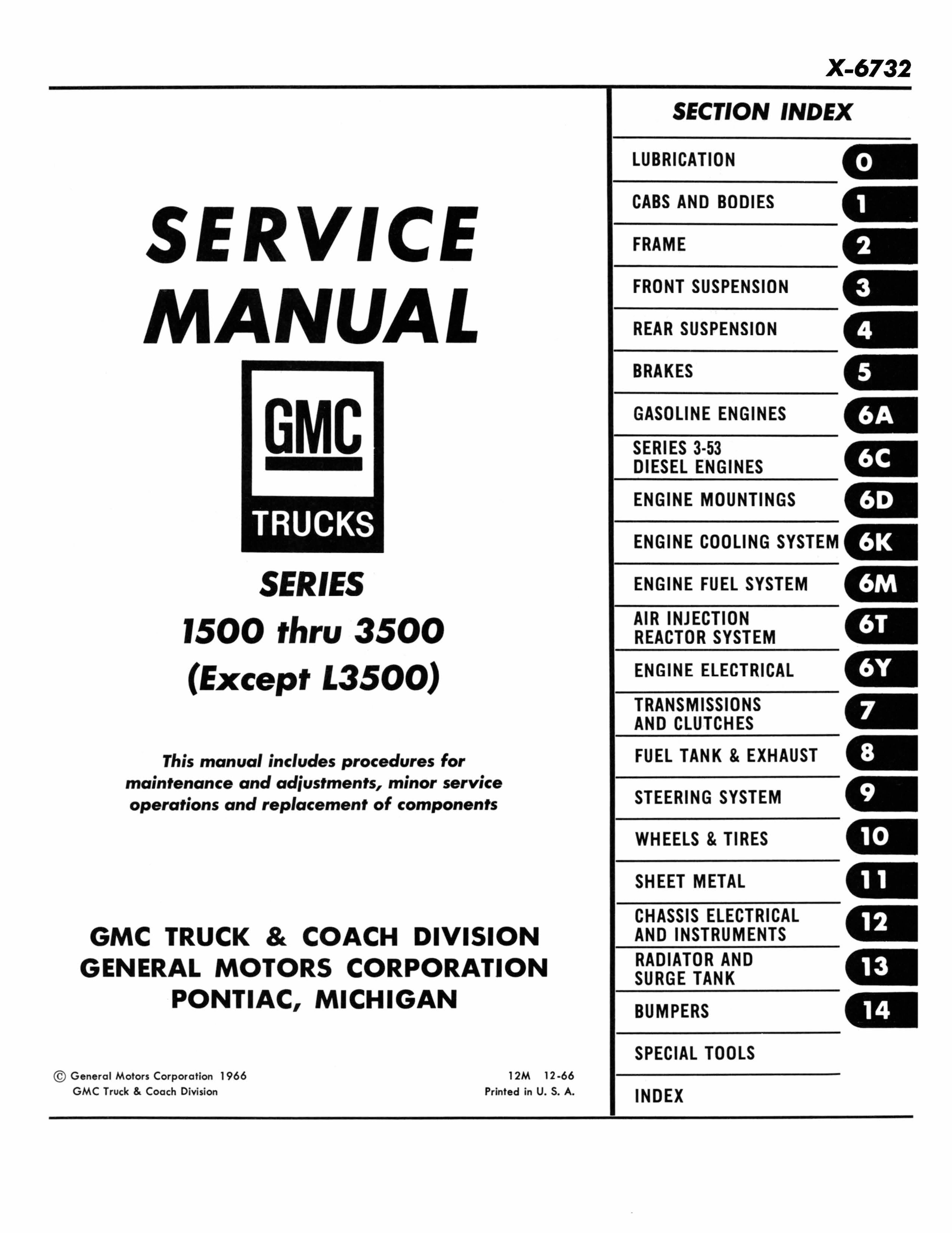 This Repair Manual is printed here in the United States, designed to duplicate the original print with better image and text quality than that of the originals for the 1967 GMC C15/C1500 Pickup vehicles.