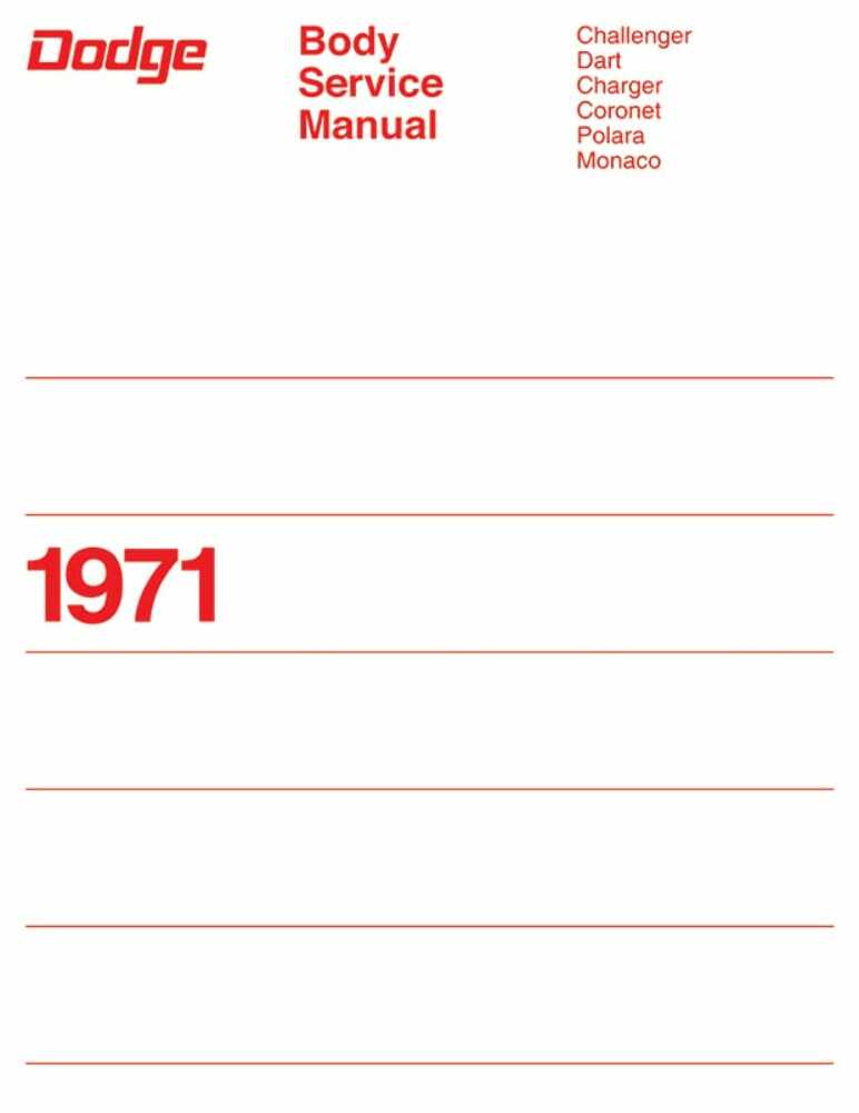 This Body Repair Manual is specifically designed to fit 1971 Dodge Challenger vehicles with a Car body style.