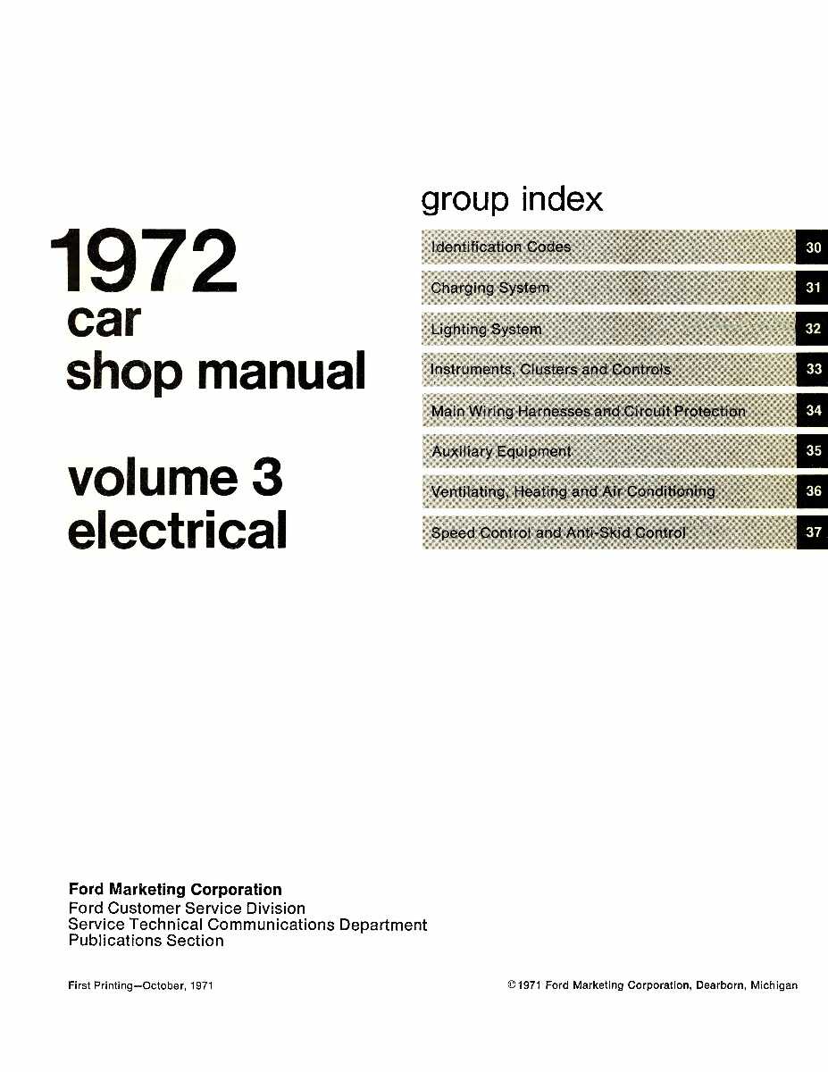 This Repair Manual is printed here in the United States, designed to duplicate the original print with better image and text quality than that of the originals for the 1972 Ford, Lincoln, Mercury Multiple Models vehicles.