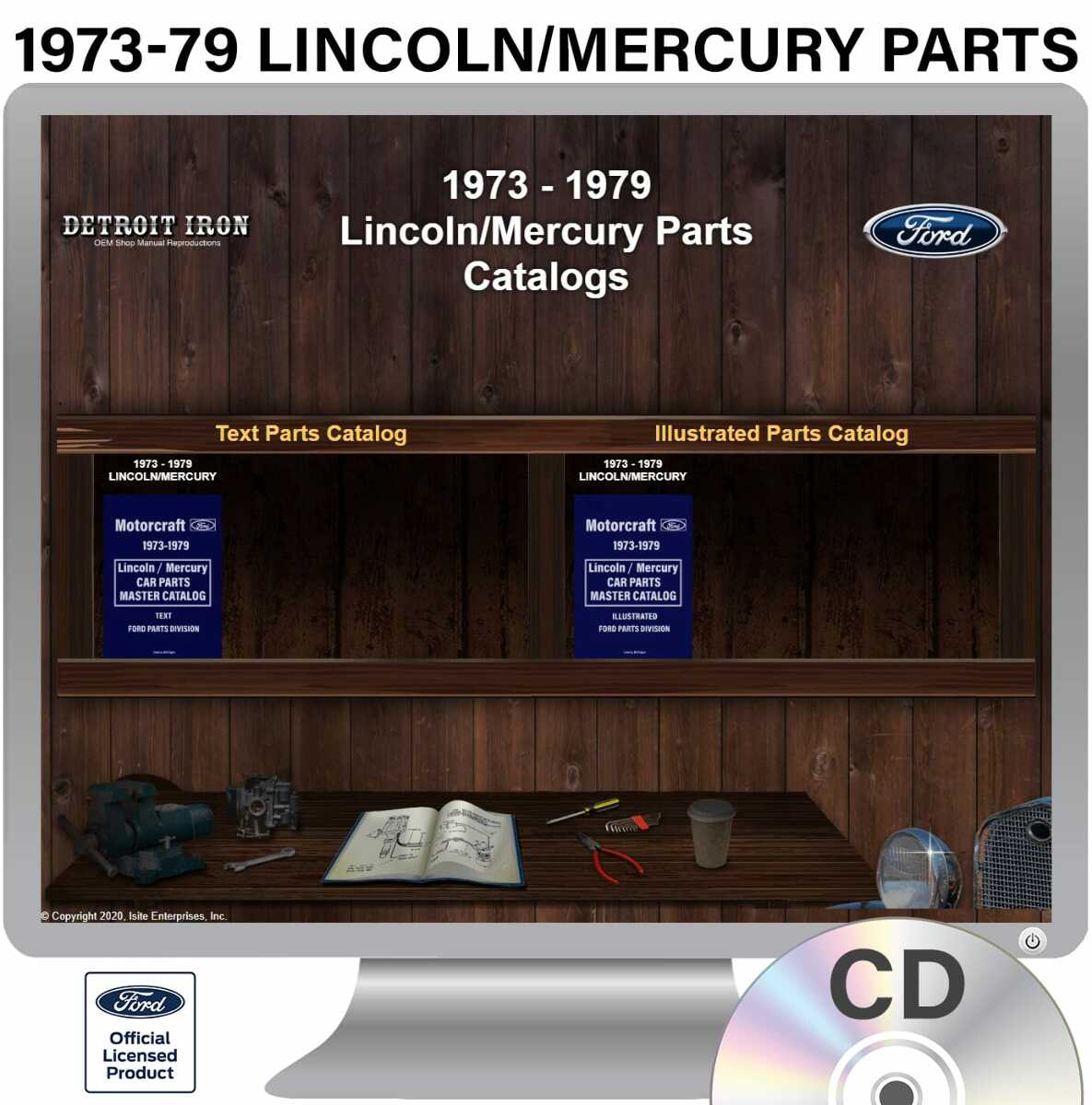 The 1973-1979 Lincoln / Mercury Parts Manuals (Only) on CD is a digital product licensed by Ford. This digital product provides a full set of original equipment manufacturer (OEM) repair and rebuild literature in digital PDF format. This set of manuals and literature were originally authored and published by the car / truck manufacturer to be used by their dealership mechanics so they are very comprehensive. It features an easy-to-use bookcase in a garage scene containing a set of PDF manuals, catalogs, brochures and nostalgia for a specific year, make and model range. Features: - Each manual is chapter bookmarked into a single PDF file, allowing for ease of searching - Files are printable and searchable - The bookcase provides organization of manual types (Service Manuals, Sales Literature, Parts Catalogs & Nostalgia). Refer below for specific details included in the 1973-1979 Lincoln / Mercury Parts Manuals (Only) Detroit Iron CD product. MANUALS INCLUDED: - 1973-1979 Lincoln/Mercury Master Parts and Accessories Catalog (Text) - 1973-1979 Lincoln/Mercury Master Parts and Accessories Catalog (Illustrated) 1973 - 1979 Lincoln, Mercury Models Covered: Continental, Mark IV, Capri, Colony Park, Comet, Cougar, Marquis, Montego, Monterey, Bobcat, Grand Marquis, Monarch, Mark V, Versailles, Zephyr An OEM Parts Guide or Parts Book provides detailed parts information via exploding diagram cutouts of sections of your vehicle assembly with part numbers and textual descriptions. A parts guide provides part interchange information so you can find replacement parts. SYSTEM REQUIREMENTS: Any Operating System (OS) that allows user access to the file system, e.g. Windows, Mac OS, Linux, Chromebook, etc. An HTML Browser such as: Edge, Explorer, Chrome, Safari, Firefox and others. NOTE: No internet connection is required to use this product.