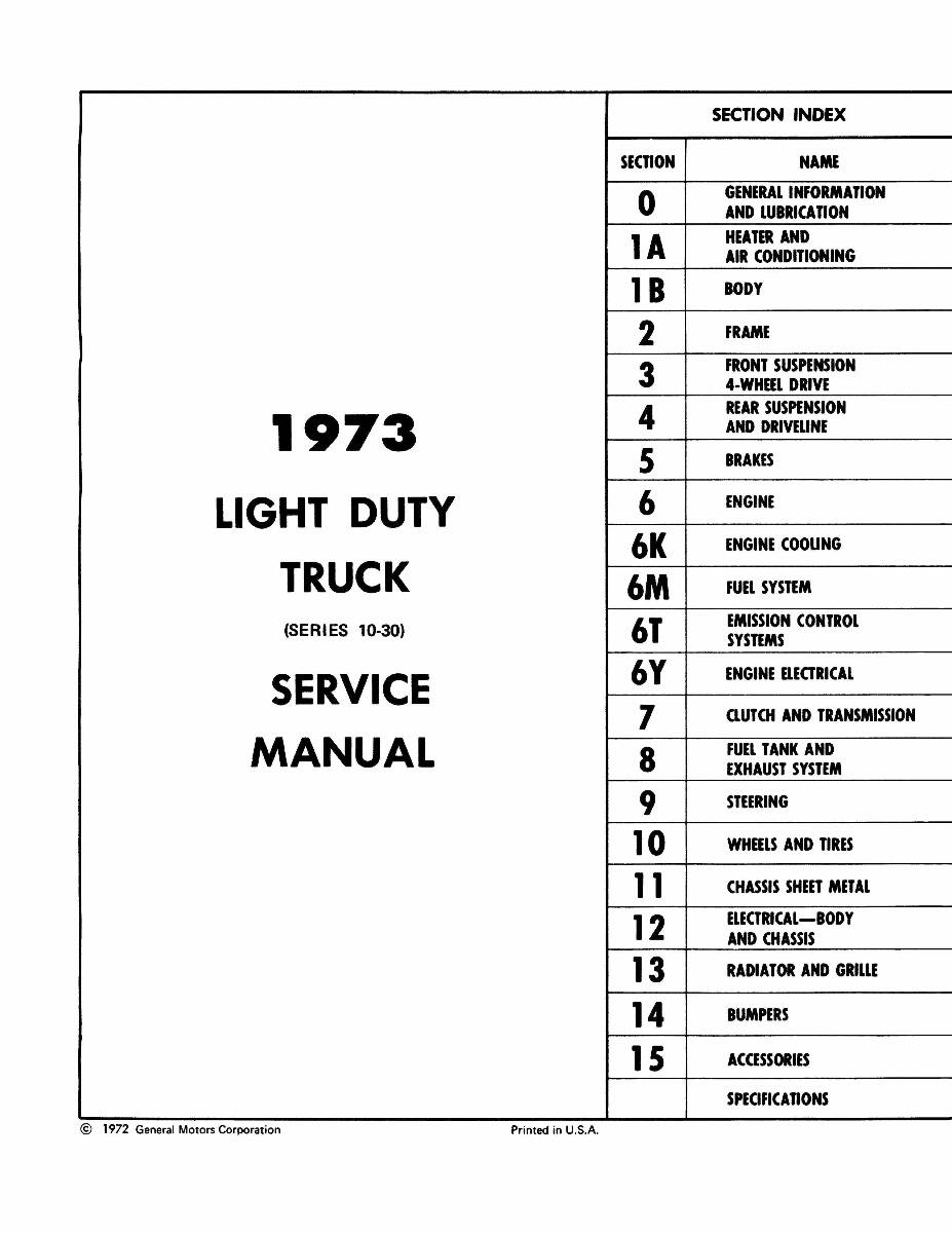 This Repair Manual is printed here in the United States, designed to duplicate the original print with better image and text quality than that of the originals for the 1973 GMC C15/C1500 Pickup vehicles.