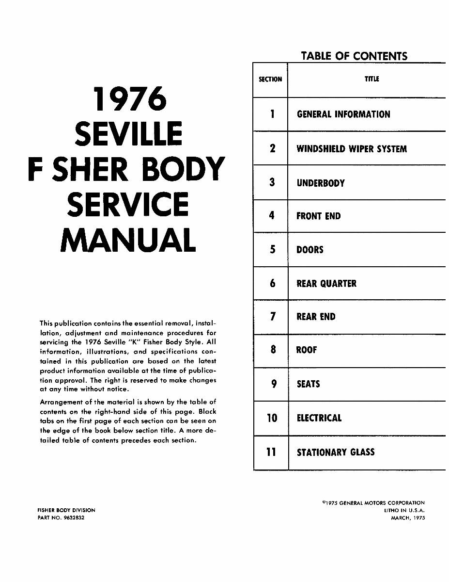 This Body Repair Manual is specifically designed to fit 1976 Cadillac Seville vehicles with a Car body style.