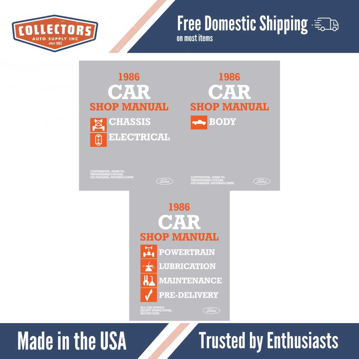 1986 Mustang, LTD, Thunderbird, Continental, Mark VII, Cougar Shop Manual Set - Volumes B, D, & F