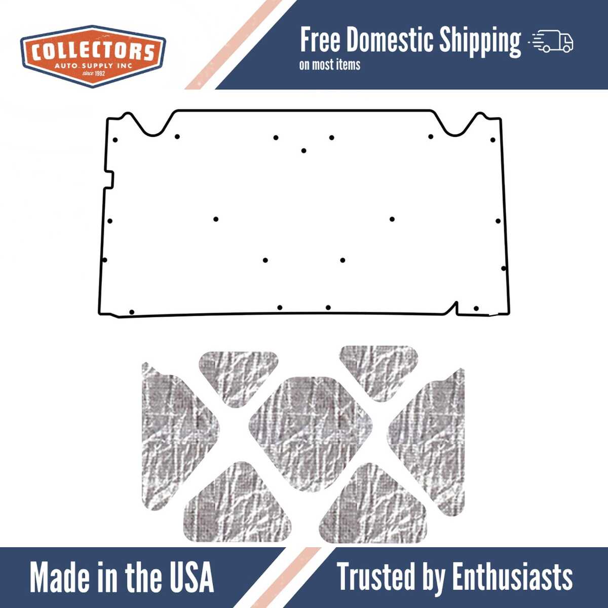This cover installs on the underside of the hood to reduce engine noise and help manage radiant heat.