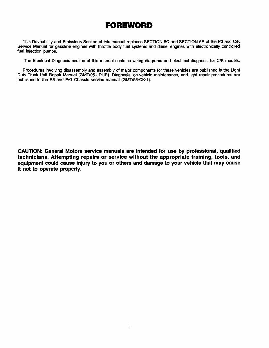 This Repair Manual is printed here in the United States, designed to duplicate the original print with better image and text quality than that of the originals for the 1995 Chevrolet, GMC Truck vehicles.