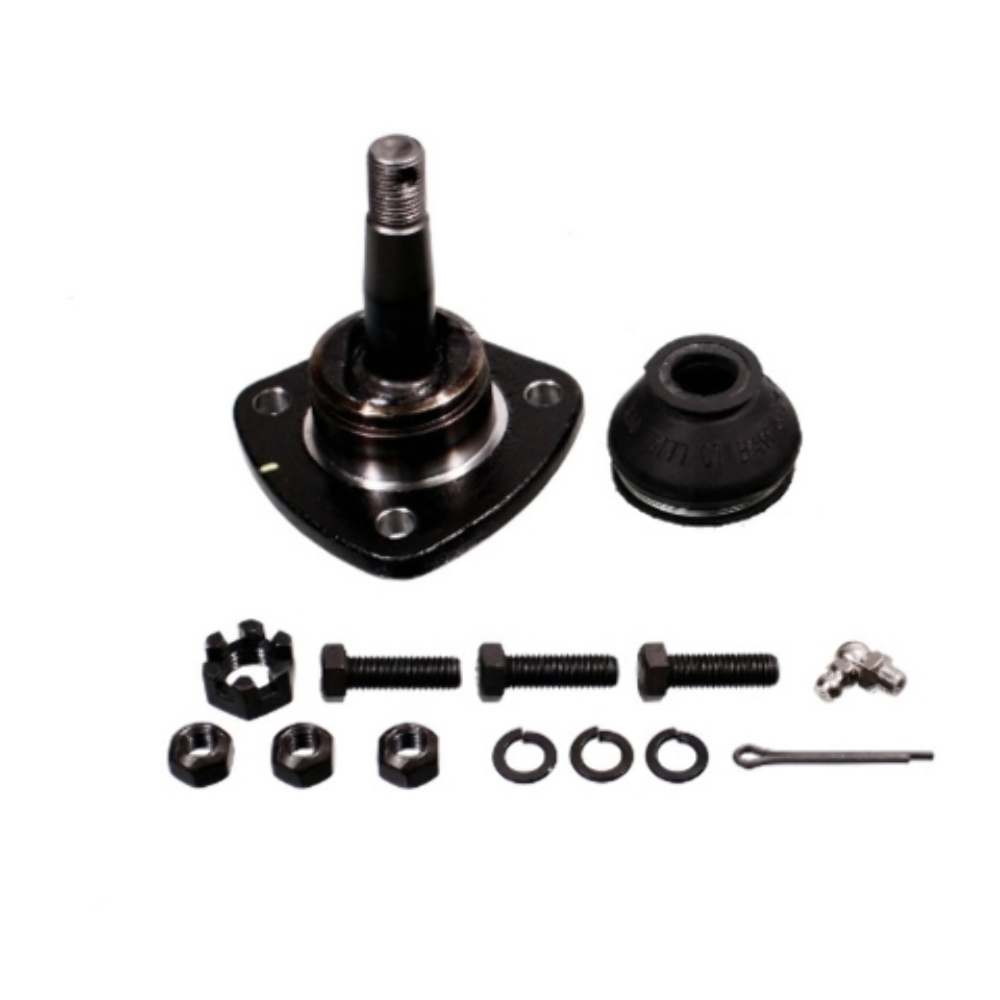 Package Contents: 1 Ball Joint, 1 Dust Boot, 1 Plate, 1 Castle Nut, 3 Bolts, 1 Grease Fitting, 3 Nuts, 3 Lock Washers, 1 Cotter Pin
