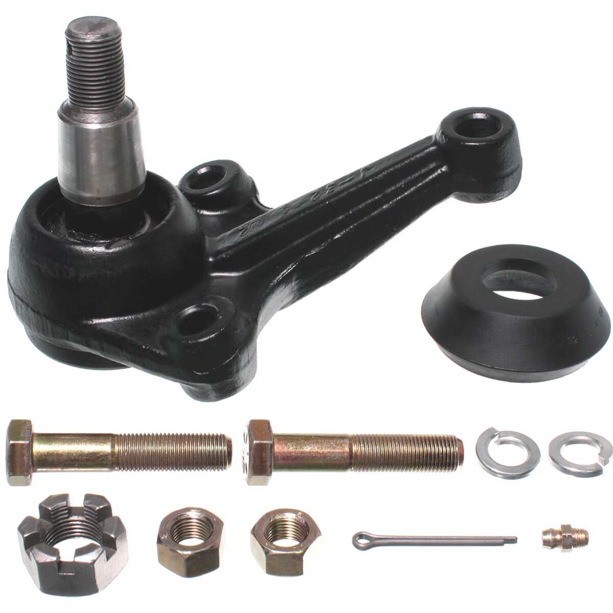 Package Contents:1 Ball Joint, 1 Dust Boot, 1 Castle Nut, 1 Cotter Pin, 2 Bolts, 2 Lock Washers, 2 Nuts, 1 Grease Fitting