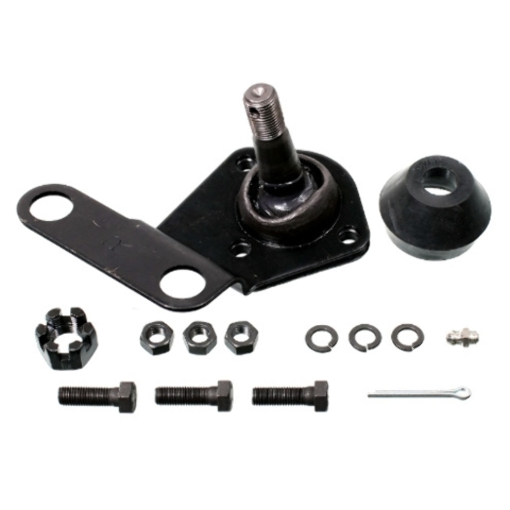 Package Contents: 1 Ball Joint, 1 Dust Boot, 1 Castle Nut, 1 Cotter Pin, 1 Grease Fitting, 3 Bolts, 3 Nuts, 3 Lock Washers