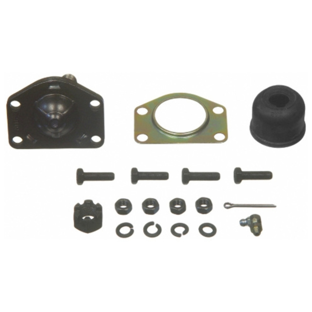 Package Contents: 1 Ball Joint, 1 Dust Boot, 1 Castle Nut, 1 Grease Fitting, 1 Cotter Pin, 4 Bolts, 4 Lock Nuts