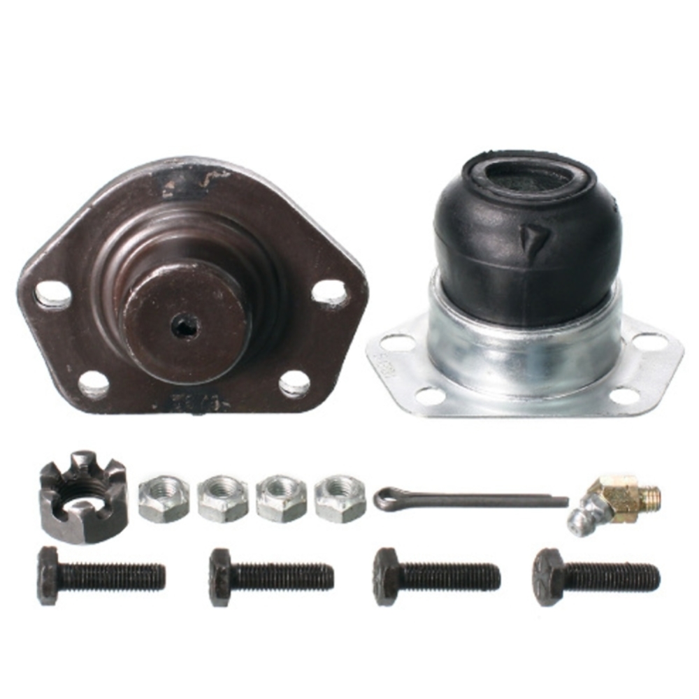 Package Contents: 1 Ball Joint, 4 Nuts, 4 Bolts, 4 Lock Washers, 1 Dust Boot, 1 Mounting Plate, 1 Castle Nut, 1 Cotter Pin, 1 Grease Fitting
