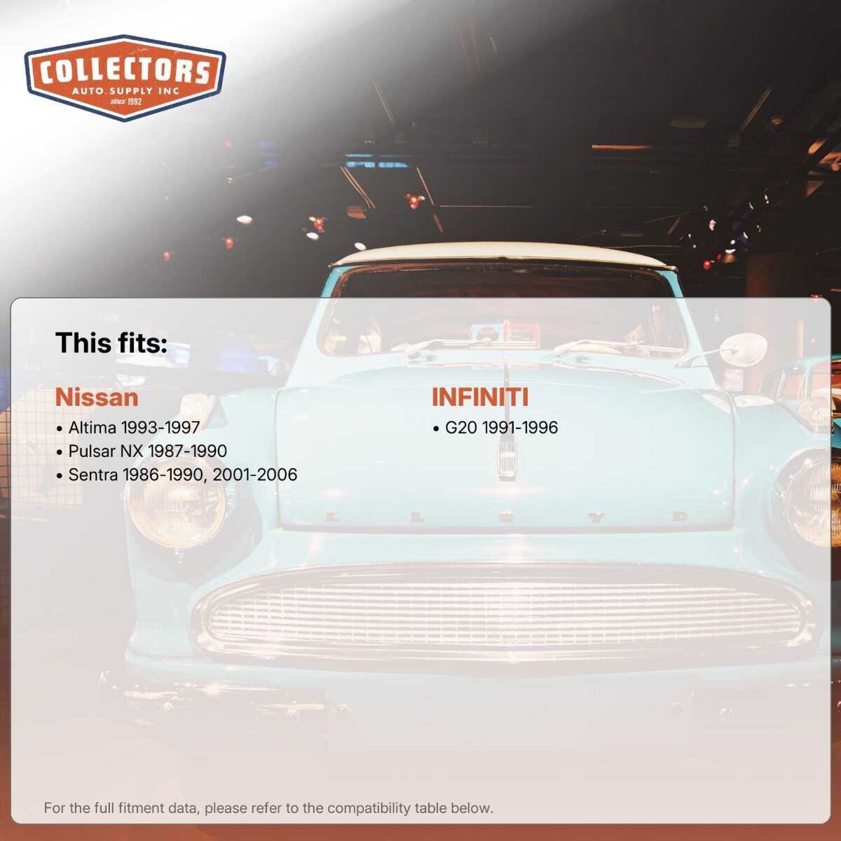 You can purchase this product directly from Collectors Auto Supply, where we specialize in classic car restoration parts and accessories. Finding the perfect part for your classic car can be difficult, and even frustrating. And let us be honest. What makes it worse is a general lack of customer love in the industry. That is why we are here, and that is why we are different. We are car people just like you, and we know what you need. And if we do not already know it, we're listening. So, contact us if you need help finding a part, or have an idea for how to improve our website, or anything else. Or if you want to do it the old-fashioned way, give us a call at 1 (800) 414-4462.