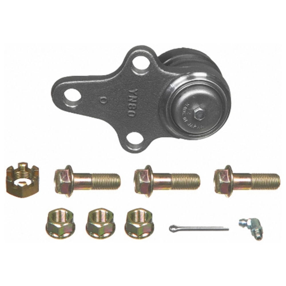 Package Contents: 1 Ball Joint, 1 Dust Boot, 1 Castle Nut, 1 Cotter Pin, 3 Bolts, 3 Lock Nuts