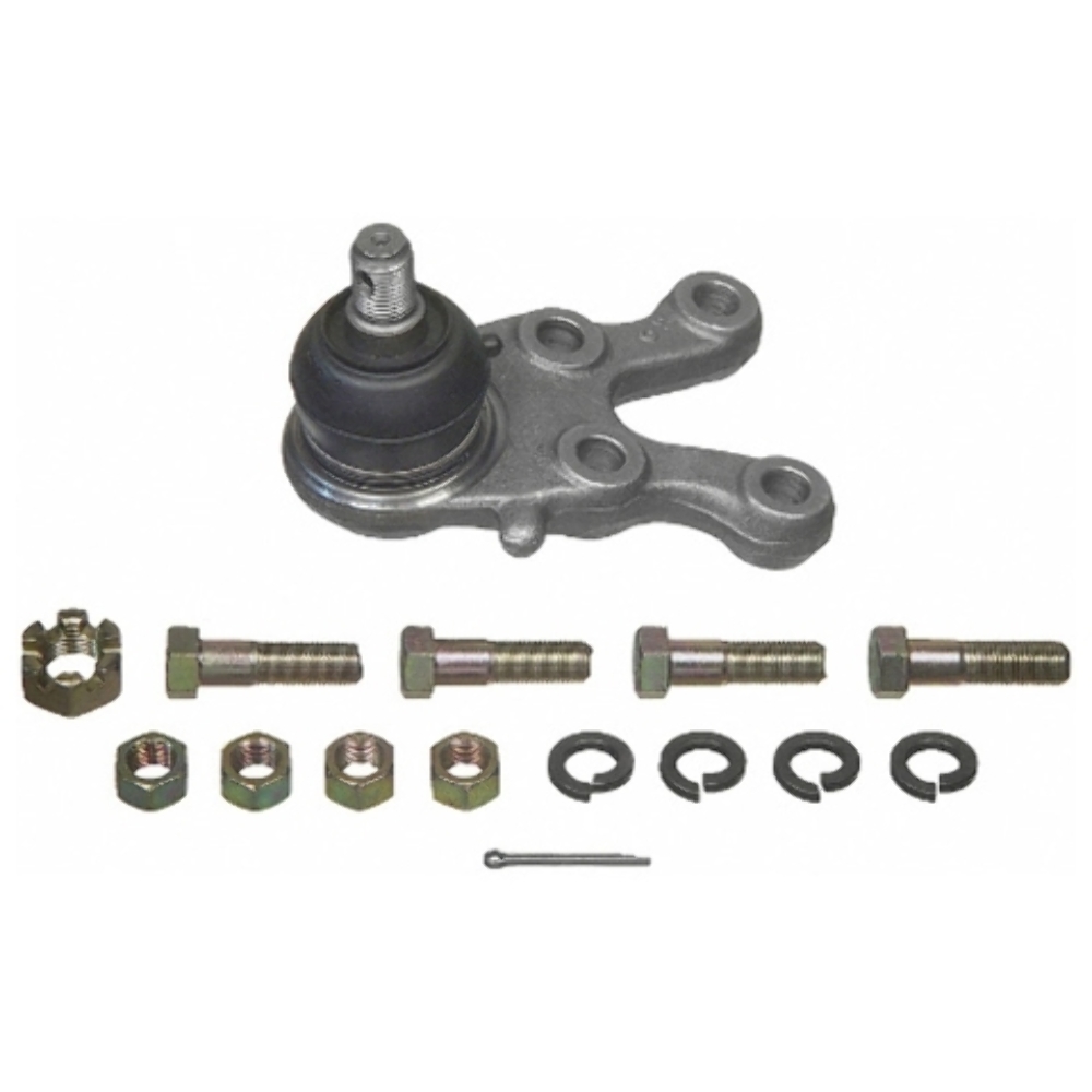 Package Contents: 1 Ball Joint, 1 Dust Boot, 1 Castle Nut, 1 Cotter Pin, 4 Bolts, 4 Lock Washers, 4 Nuts, 1 Grease Fitting