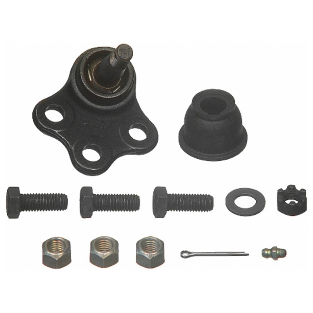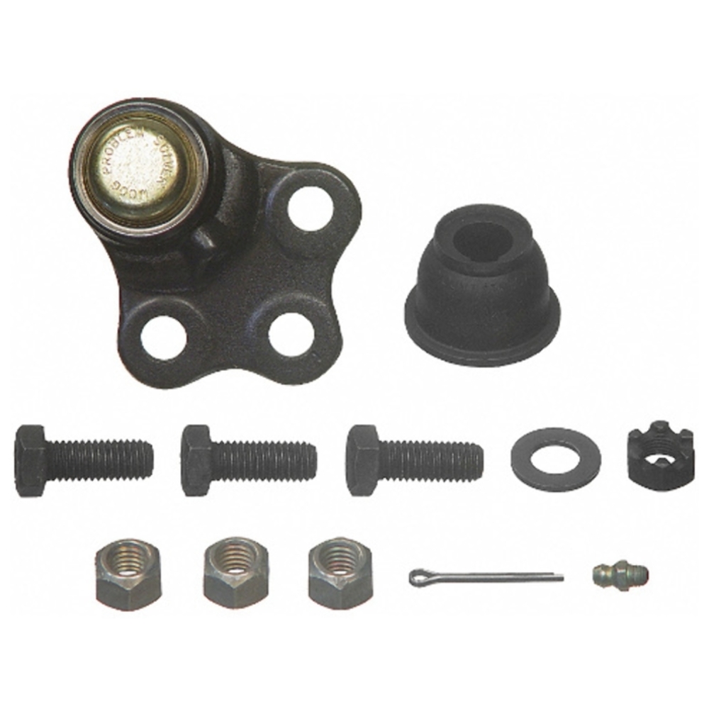 Package Contents: 1 Ball Joint, 1 Dust Boot, 1 Castle Nut, 1 Cotter Pin, 1 Grease Fitting, 3 Bolts, 3 Nuts, 1 Washer