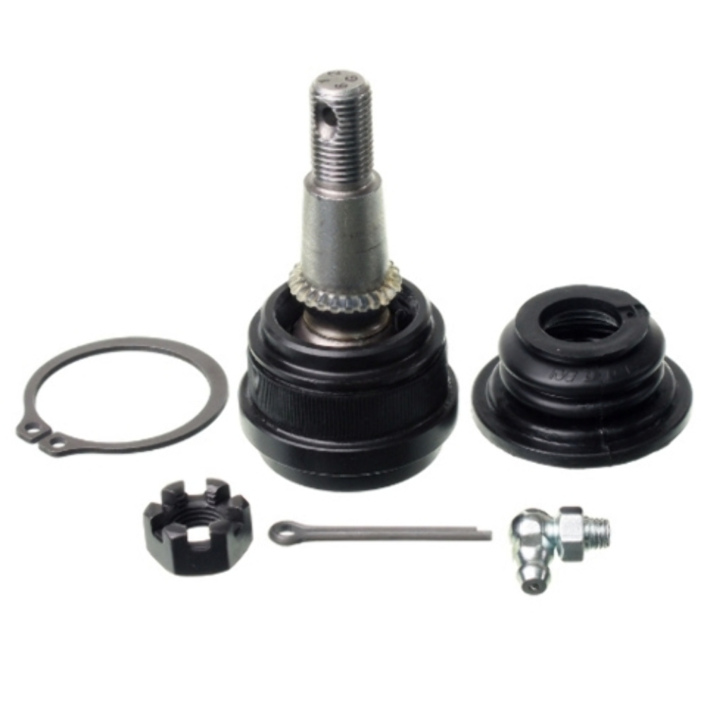 Package Contents: 1 Ball Joint, 1 Dust Boot, 1 Castle Nut, 1 Cotter Pin, 1 Snap Ring, 1 Grease Fitting