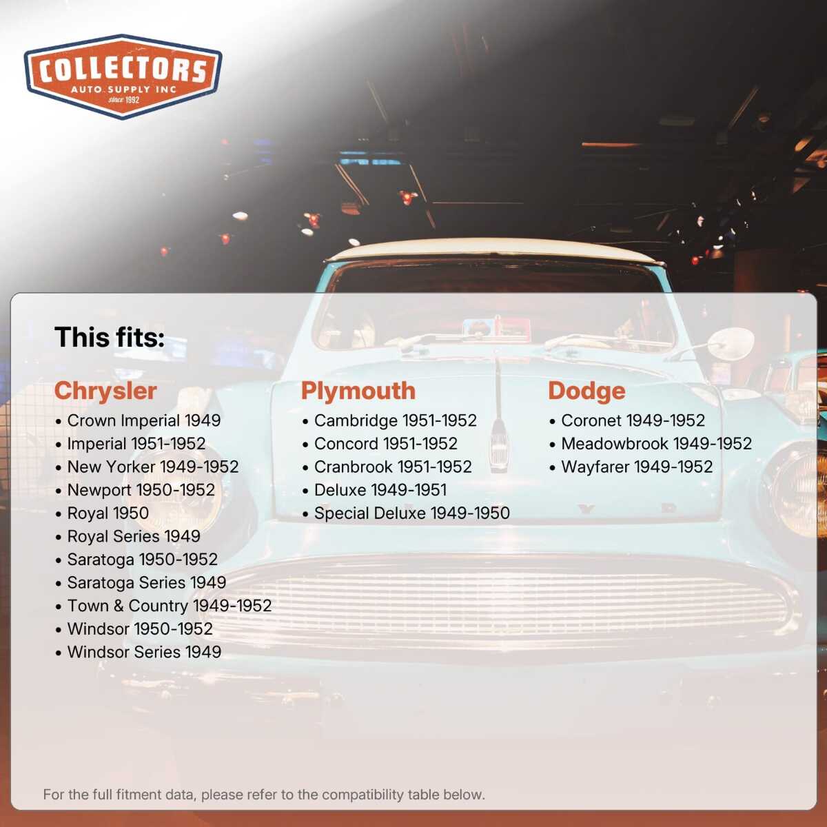 You can purchase this product directly from Collectors Auto Supply, where we specialize in classic car restoration parts and accessories. Finding the perfect part for your classic car can be difficult, and even frustrating. And let us be honest. What makes it worse is a general lack of customer love in the industry. That is why we are here, and that is why we are different. We are car people just like you, and we know what you need. And if we do not already know it, we're listening. So, contact us if you need help finding a part, or have an idea for how to improve our website, or anything else. Or if you want to do it the old-fashioned way, give us a call at 1 (800) 414-4462.