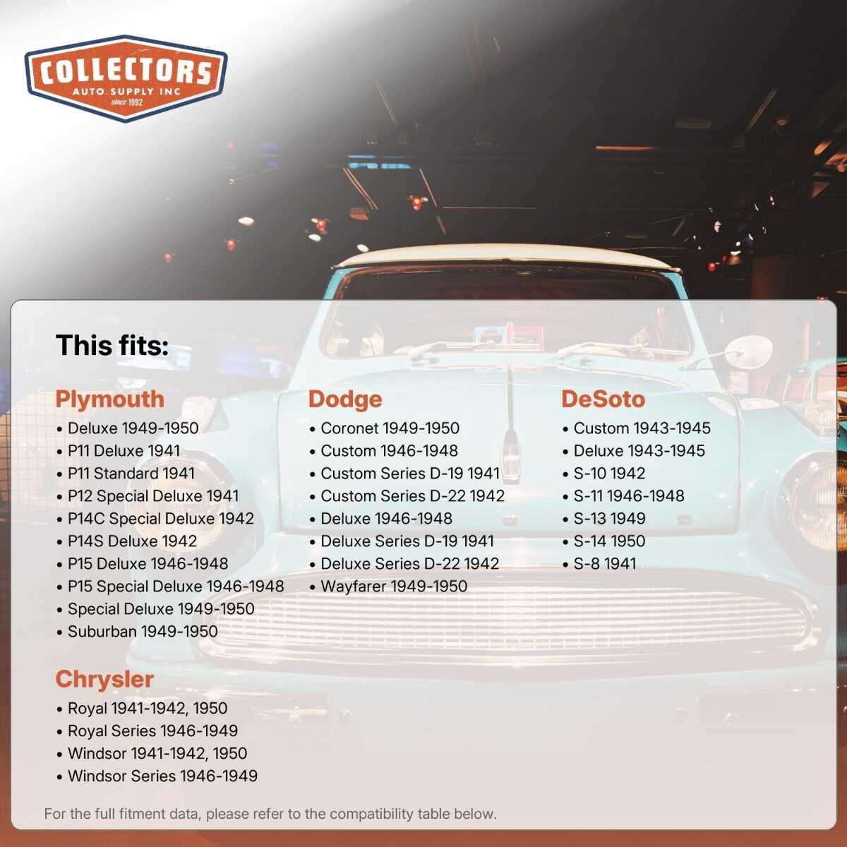 •Manufactured in the US, Available for all popular models of classic and vintage cars and trucks