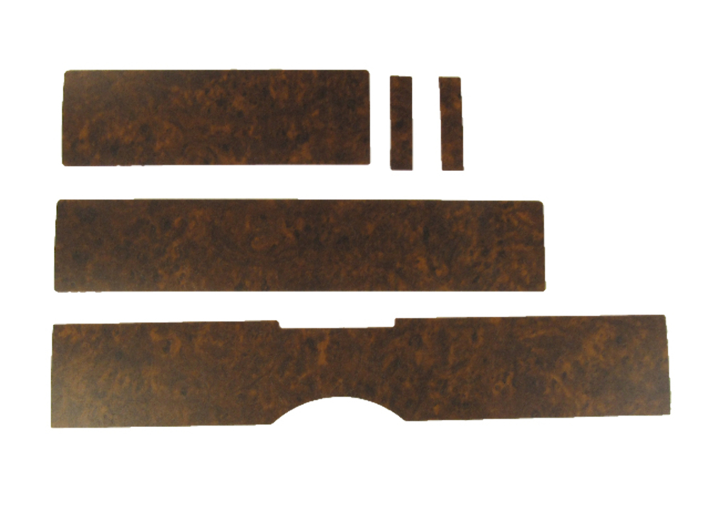 This Dash Cover Insert Trim covers the Front area of the vehicle, is Standard in color, and is made of a Vinyl material. This kit will arrive in 5 pieces, and is built to resemble to originals as closely as possible.