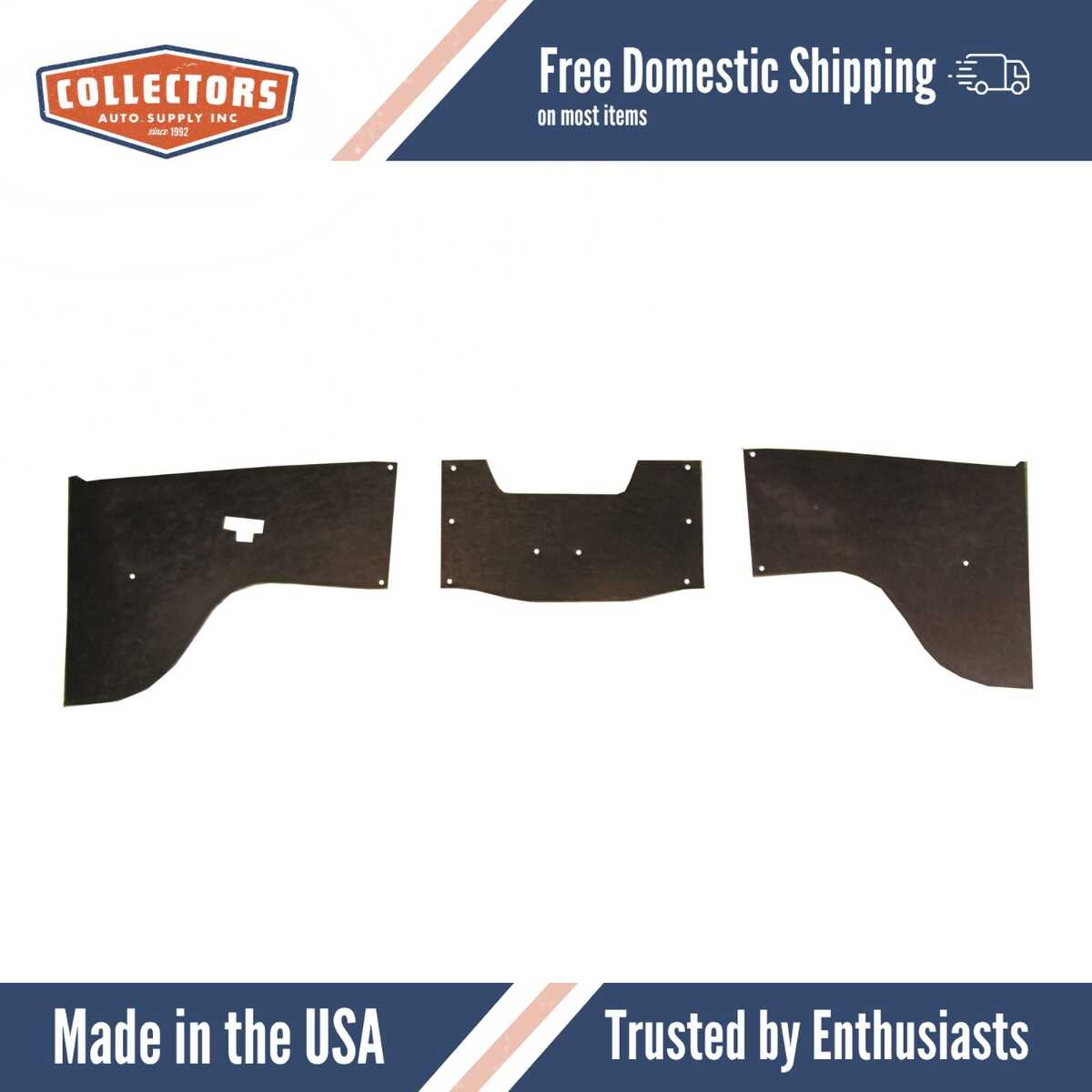 This insulation mounts to the firewall to block engine heat, noise, and vibration from entering the cabin.