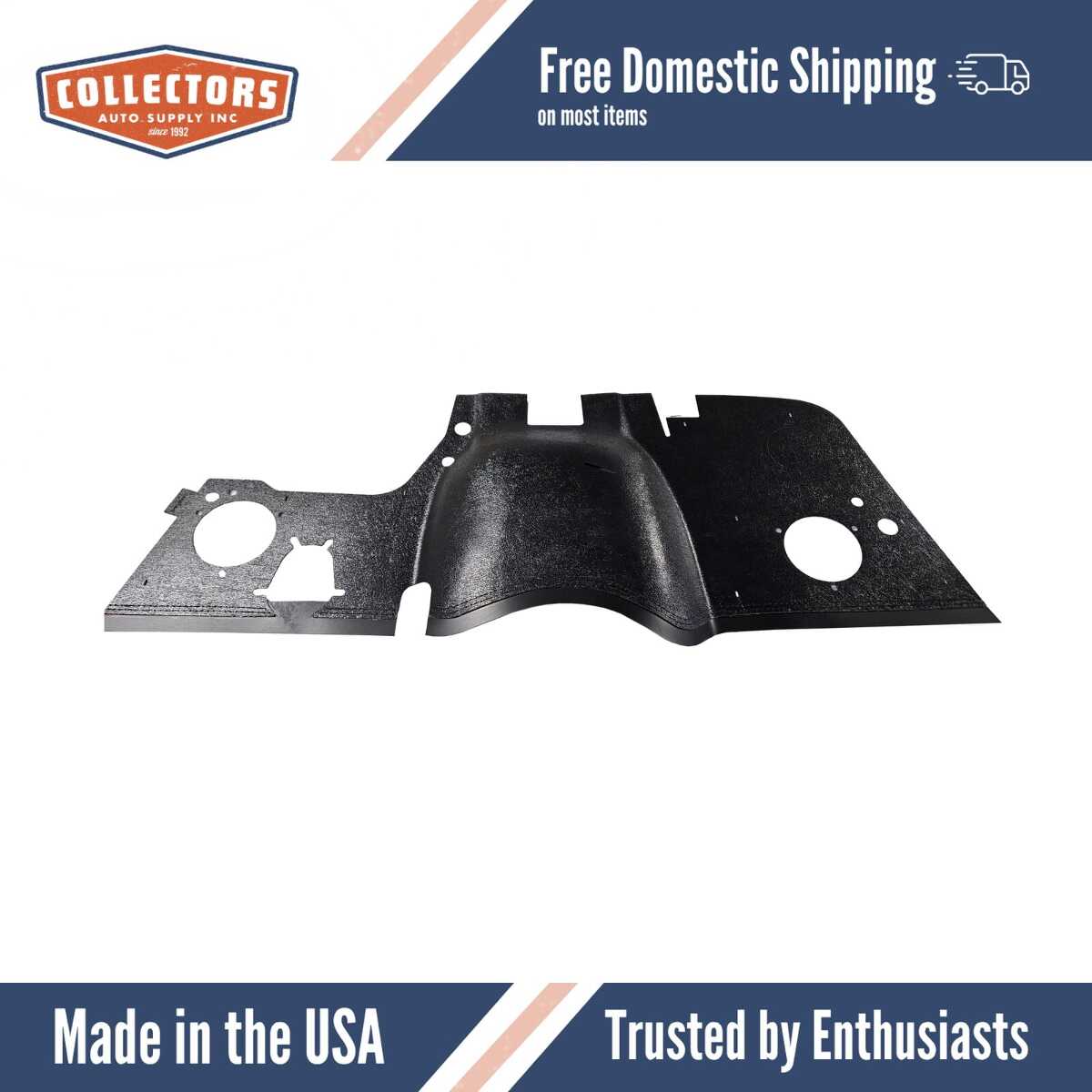This insulation mounts to the firewall to block engine heat, noise, and vibration from entering the cabin.