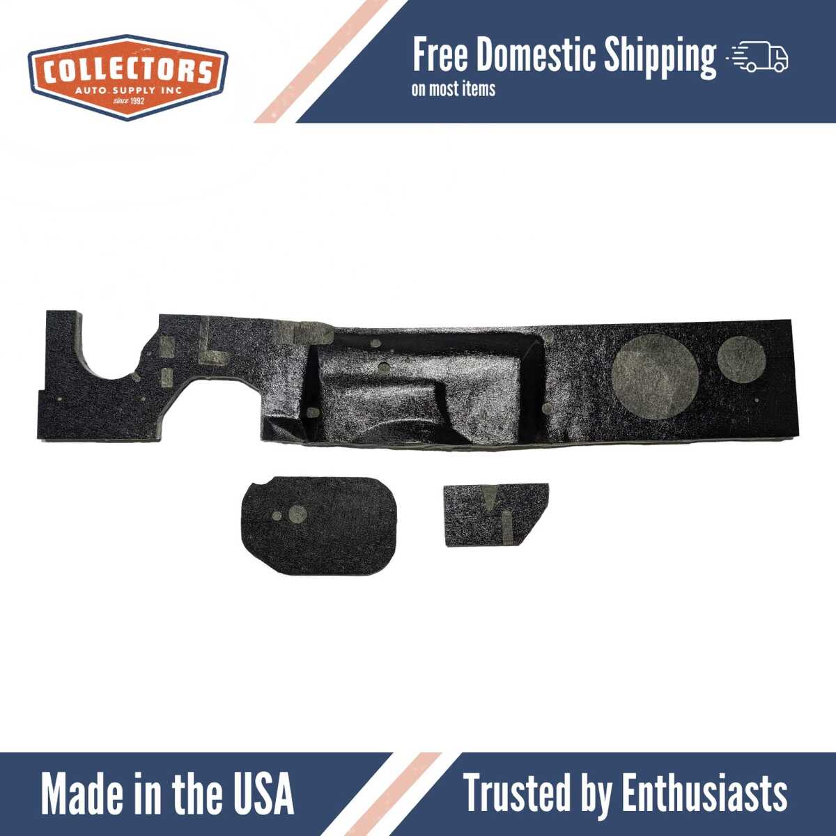 This insulation mounts to the firewall to block engine heat, noise, and vibration from entering the cabin.