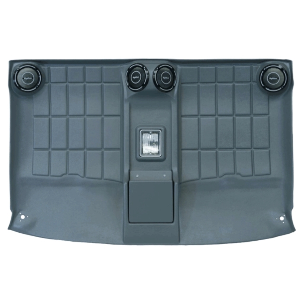 Remove the old headliner material and hardware. Position this headliner against the roof, secure with the mounting hardware, and reinstall trim pieces.