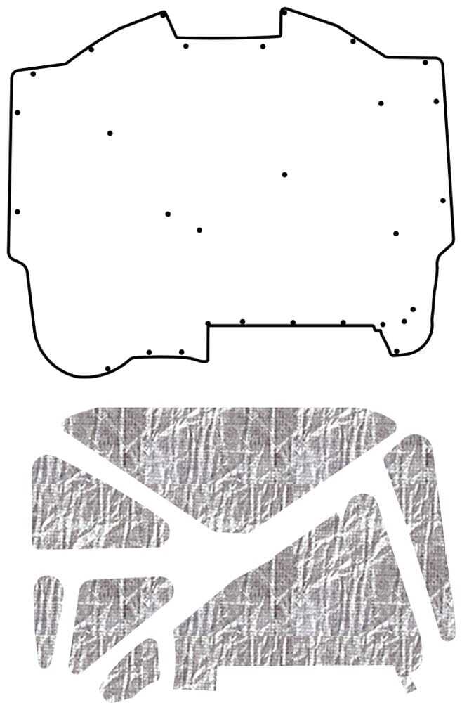 The kit includes an A.B.S. hood panel, pre-cut heat shield insulation panels, mounting pins, spray adhesive, seam tape, and detailed installation instructions for your convenience.