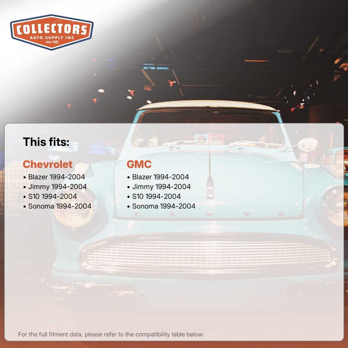 You can purchase this product directly from Collectors Auto Supply, where we specialize in classic car restoration parts and accessories. Finding the perfect part for your classic car can be difficult, and even frustrating. And let us be honest. What makes it worse is a general lack of customer love in the industry. That is why we are here, and that is why we are different. We are car people just like you, and we know what you need. And if we do not already know it, we're listening. So, contact us if you need help finding a part, or have an idea for how to improve our website, or anything else. Or if you want to do it the old-fashioned way, give us a call at 1 (800) 414-4462.