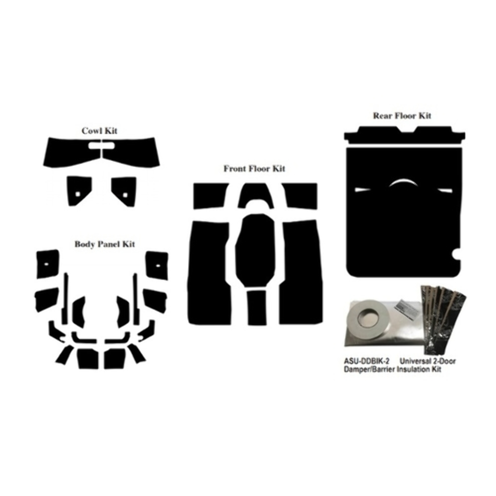 The Complete Kit includes floor insulation, cowl insulation, body panel insulation, and 2-door kit Dynamat strips, providing comprehensive coverage for your Willys Jeepster.