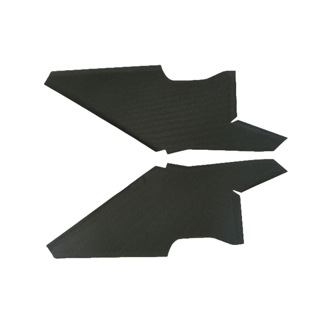 This panel covers the rear pillar area inside the car, finishing the transition between the roof, side panels, and rear glass.