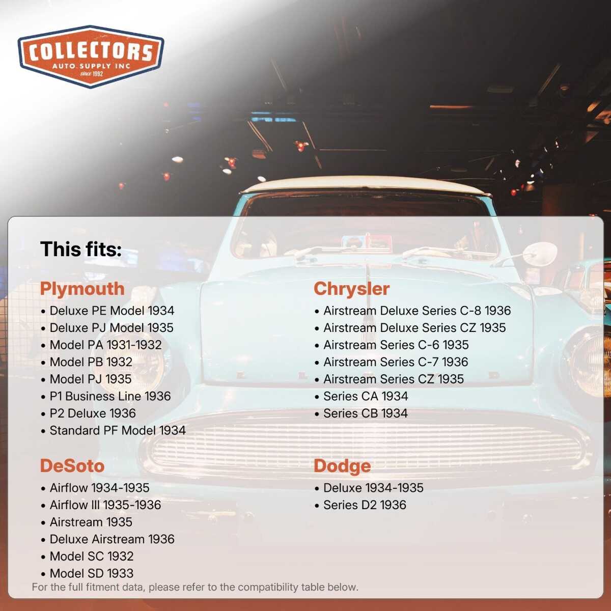 • Factory-fresh spring bolts, essential for all interior restoration processes
