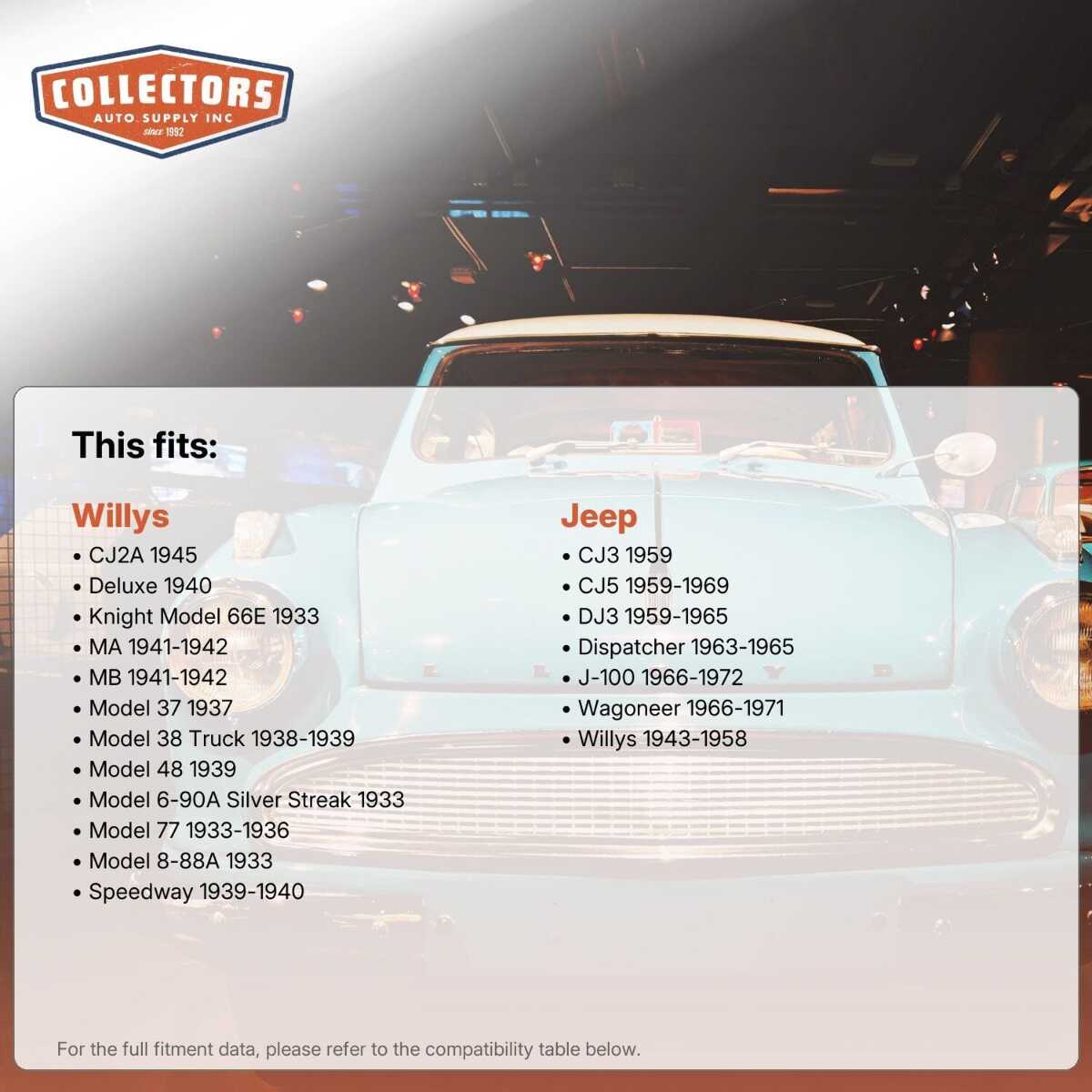 • Available for all popular vintage, antique and classic cars (scroll down to see compatible models)