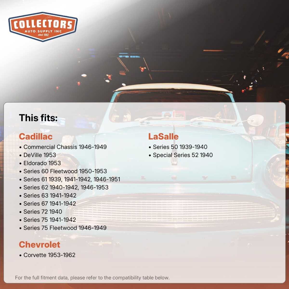 Collectors Auto Supply offers premium replacement auto parts and the experience to get you the right parts for your vehicle. Our group of experts has a combined knowledge of more than a half-century specializing in classic restoration components. Together, we’ve been making old rides new again for more than 25 years.