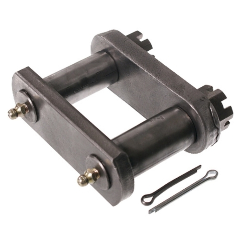 Package Content: 1 Shackle Assy, 2 Bushings, 2 Castle Nuts, 2 Cotter Pins, 2 Grease Fittings